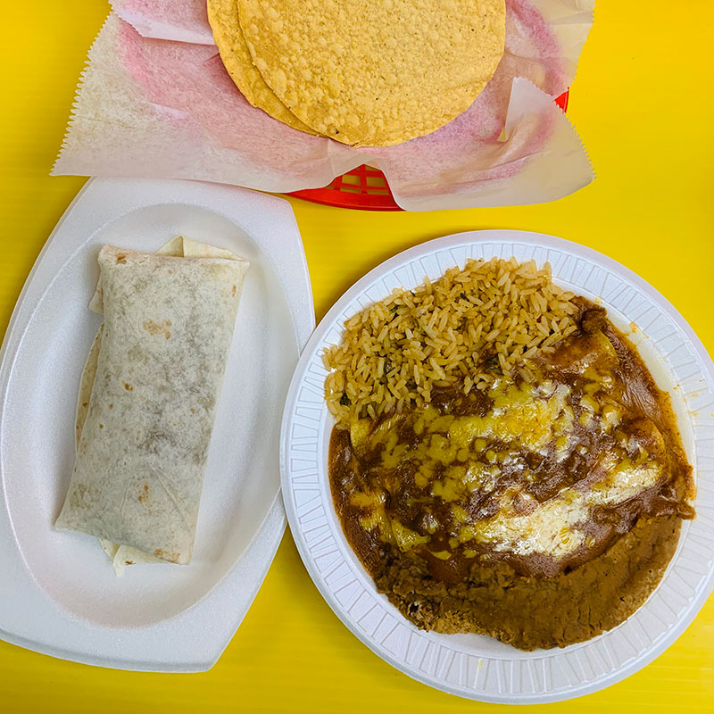 Burrito, Two Enchiladas (Meat, Cheese, or Chicken)